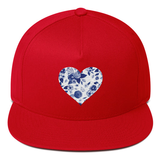 Blue & White Floral Heart (Embroidered) // Snapback Hat