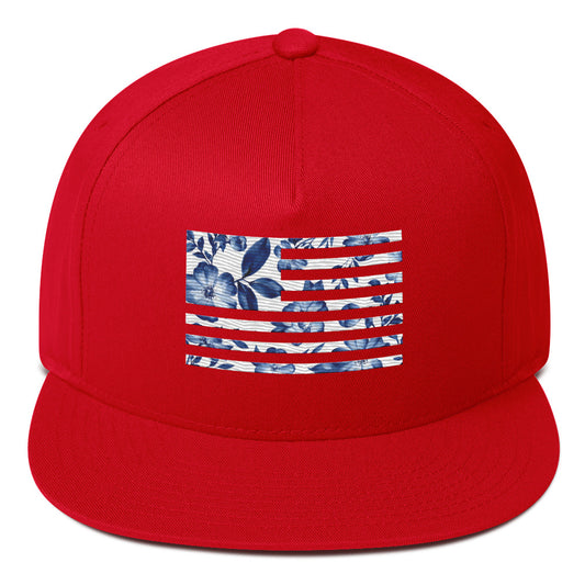 Blue & White Floral Flag (Embroidered) // Snapback Cap