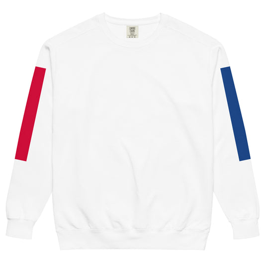 Blue/Red Block Sleeves // Unisex garment-dyed sweatshirt